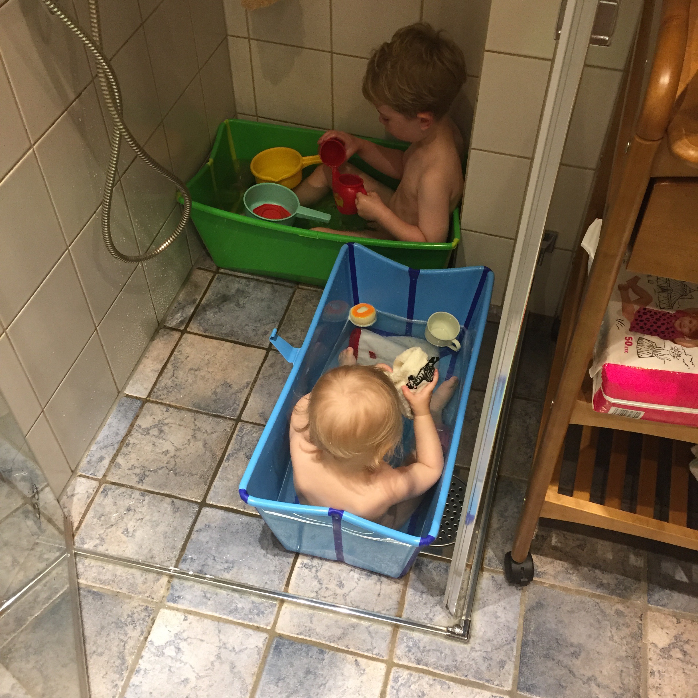 Frühstück und so ohne Bilder. Frühstück halt, Besonderheit vielleicht die frischen Brötchen, die Herr Rabe wegen akuter Backfaulheit seiner Frau heute früh holte. Waren aber nicht so der Knüller und ziemlich teuer. Nach dem Frühstück gab es etwas Reibereien zwischen den Kindern: Michel spielt gerne mit Dingen direkt vor Pippis Nase, rastet dann aber aus, wenn sie ankommt und es antatscht. Ja, sie macht dann auch mal Duplogebäude oder Zugschienen kaputt oder isst ein Gemälde, aber tjanun, dann soll er mit seinem Krams woanders hingehen, die Wohnung ist wahrlich groß genug und ich kann Pippi ja auch nicht anbinden. Naja, jedenfalls brüllte Michel in einer Tour „NEIN! NEINEINEIN!!! Mamaaaaa! PIPPI WEGNEHMEN!!!“ was mich dezent auf die Palme brachte, allerdings schaffte ich es diesmal, nicht die Kinder anzuschreien, sondern steckte sie einfach in die Badewannen. Das klappte wunderbar. Plötzlich spielten sie friedlich, Michel gab Pippi was von seinem Kochgeschirr, das er in die Wanne mitgenommen hatte, ab und beide plantschten vergnügt vor sich hin.