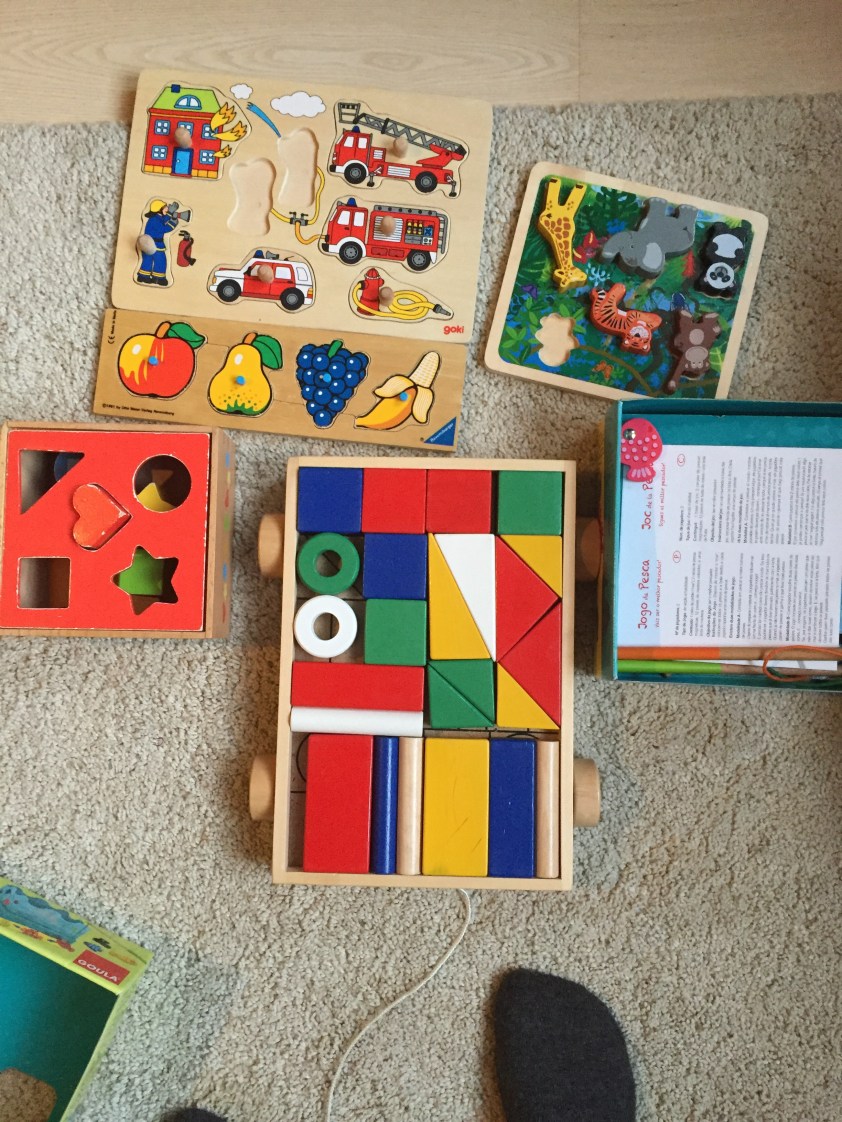 Nachher. Ich fand auch noch den Papagei. Der Rest ist weder unterm noch im Sofa, noch im Regal. Vermutlich in irgendeiner Spielzeugkiste.