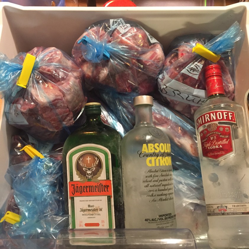 Um das Ganze abzukürzen: nein, ich hab das Kleid nicht bekommen.Wieder zu Hause verstauten wir das Lamm im Gefriehrfach. Es war sogar noch Platz für den Schnaps.