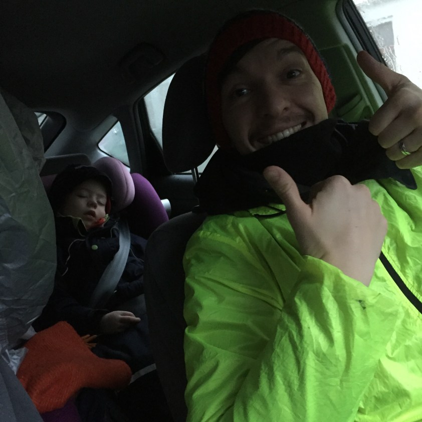 Zuerst waren wir einen Weihnachtsbaum besorgen. Da gibt es hier in nicht allzu großer Entfernung einen Hof, der eigene Weihnachtsbäume anbietet, zum Selberschlagen, und an den zwei Wochenenden vor Weihnachten mit ein bisschen Programm drumrum, dann gibt es Kaffee und Kekse am Lagerfeuer und je nach Wetter kann man Pferdeschlitten fahren oder die Kinder können Ponyreiten. Das Wetter als wir ankamen war allerdings unterirdisch schlecht. 2 Grad und Regen, der Untergrund komplett vereist, wirklich kein Wetter, bei dem man lange in einem Weihnachtsbaumfeld herumstapfen möchte. Eigentlich kein Wetter, um länger als unbedingt nötig draußen zu sein. Wir waren dementsprechend froh, dass es auch fertig geschlagene Bäume da gab, kauften nach kurzer Diskussion* eine der letzten drei „Edeltannen“, verstauten das Ganze im Auto, ignorierten Pippis skeptischen Blick (die Plane, in die wir den Baum eingewickelt hatten, damit nicht das ganze Auto vollgenadelt wird, hing nur ein paar cm über ihrem Kopf) und fuhren direkt wieder nach Hause. Bis wir da waren, waren beide Kinder eingeschlafen. Endlich kurz Ruhe.