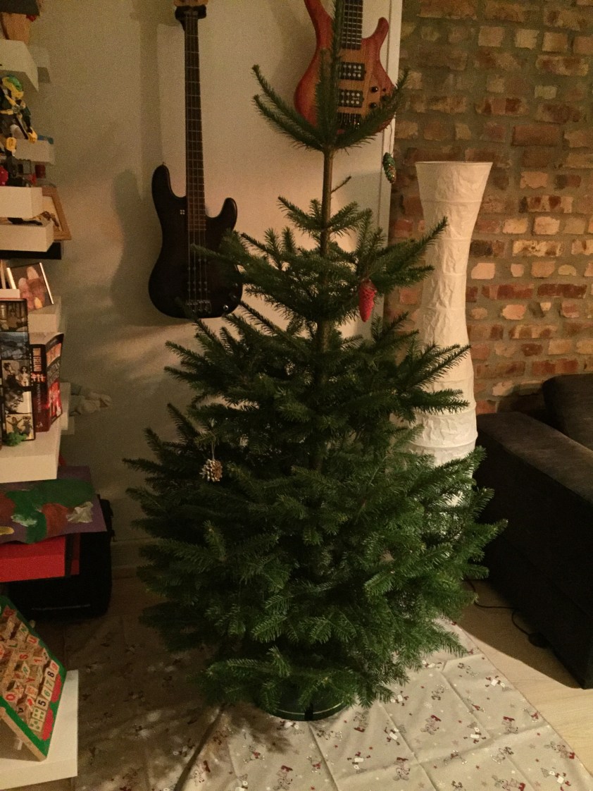 Herr Rabe hat den Baum dann zu Hause auch gleich aufgestellt. Nicht dass uns noch wer ans Bein pisst, wegen Brandschutz und Bäume im Flur oder so.