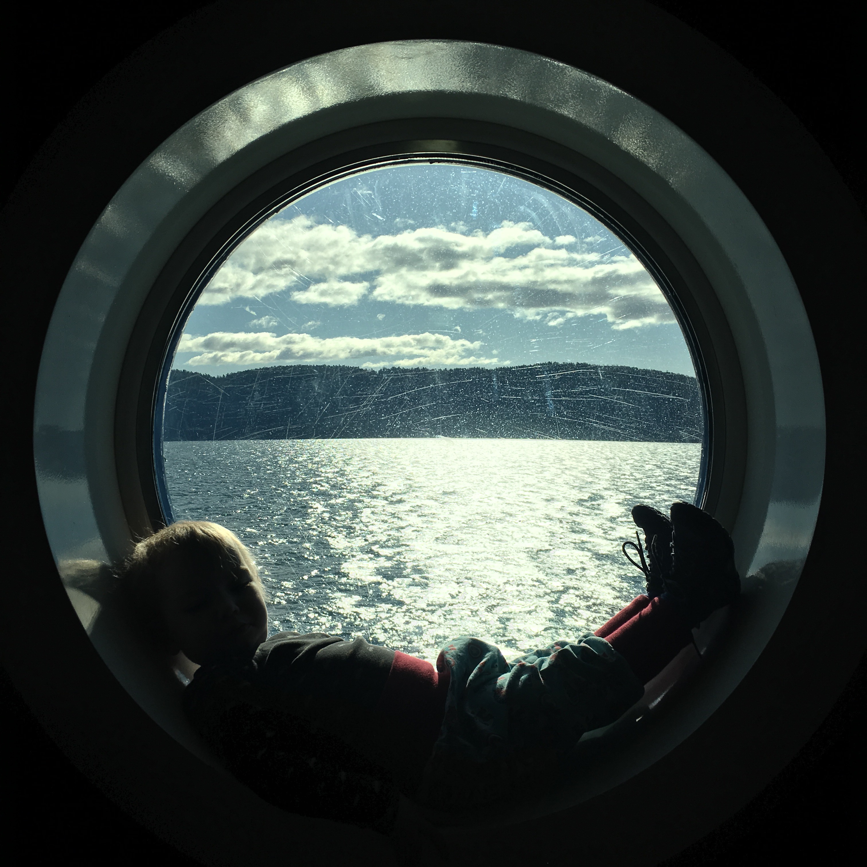 Am Boot gibt es übrigens eine Art Waschanlage, so eine Bürste, die immer mal am Fenster vorbeifährt. Das führt dann dazu, dass eben noch entspannte Kleinkinder panisch aus dem Bullauge hüpfen.
