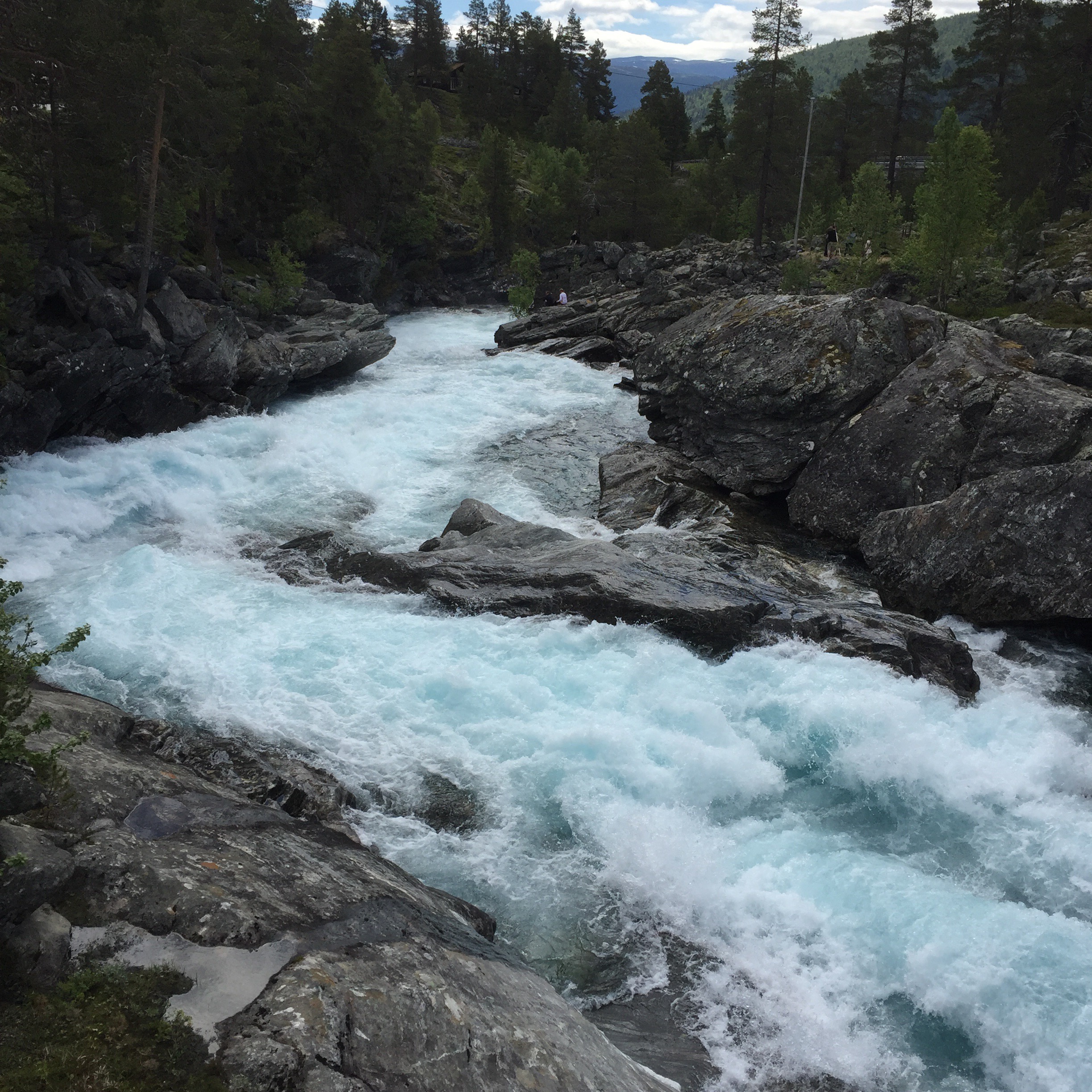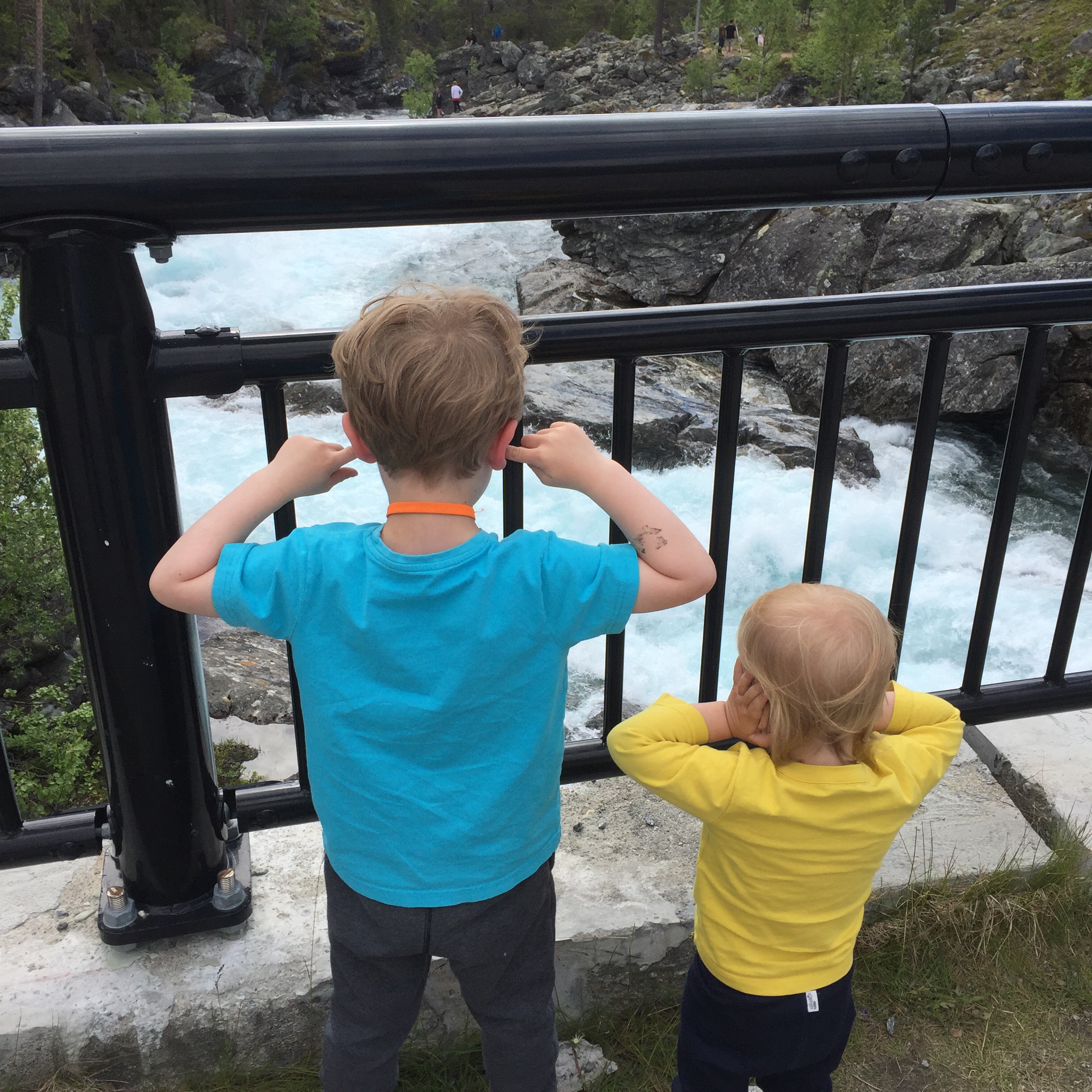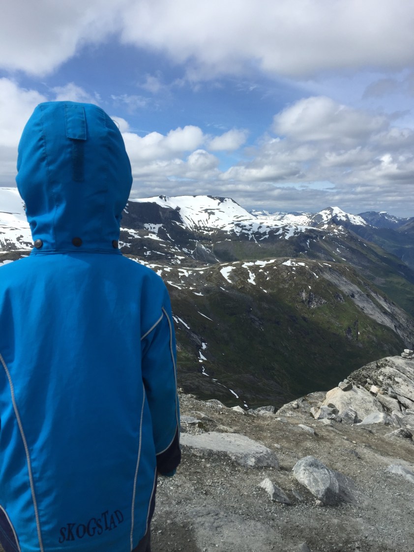 Aber auch die Erkenntnis ist interessant, dass Michel so eine Art „Sozial-Akku“ hat. In der Woche in Frankfurt hatte ich ein ganz zauberhaftes Kind, ganz offen und fröhlich und es sprach so gut deutsch wie nie! Ich hatte da schon die Vermutung, dass sich das rächen würde und so kam es auch. Zwischen Frankfurt und Bergen ließ Michel, ich kann es nicht anders sagen, die Sau raus. Suchte Streit (mit uns), rastete aus, schrie und schlug und warf Dinge. In Bergen dann wieder: Vorzeigekind. Nach Bergen, genau genommen am Abend der Fahrt von Høyanger nach Dønfoss, sprach Herr Rabe aus Verzweiflung über die Ausraster from hell iPad-Verbot für den letzten Fahrt-Tag aus. Das führte zwar erstmal zu mehr Geschrei und dann auch am Morgen nochmal zu einem mittleren Terz, aber nach einer Stunde Fahrt und mit vielen phantasievollen Geschichten vom Rücksitz piepste er unvermittelt „Papa? Ich hab mich benehmt.“ Die message war also angekommen. Und das Kind kann seine Ausraster tatsächlich ein Stück weit kontrollieren. Hurra. (Nach nochmal einer Dreiviertel Stunde Fahrt und einer längeren Pause wurde das Verbot dann aufgehoben.) Ich bin maöl gespannt, wie es nächste Woche wird, wenn Herr Rabe und die Kinder Michels Tante in England besuchen.