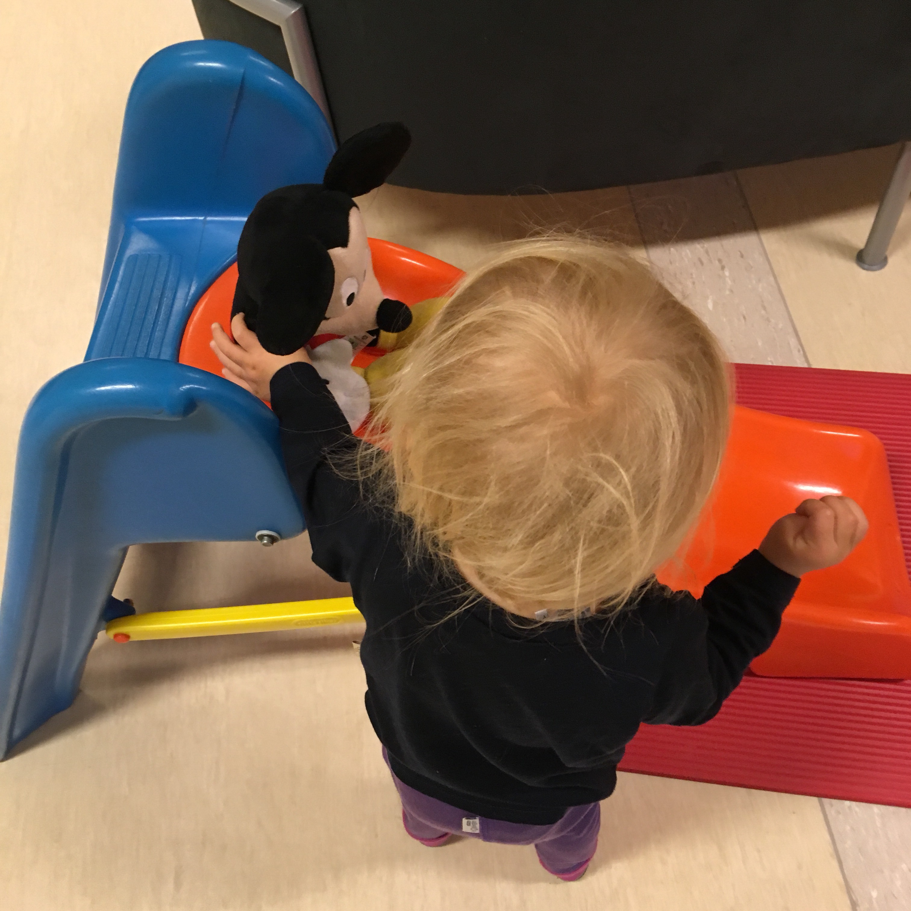 Dann fuhren wir direkt weiter zum Blut abnehmen ins Krankenhaus. Das hatte der Kinderarzt, bei dem wir in zwei Wochen einen Termin haben, so angeordnet. Total blöd räumlich organisiert: der Wartebereich grenzt direkt an die Behandlungsräume. Wir hörten die ganze Zeit ein völlig hysterisches Kind schreien. Dem Geräusch nach zu urteilen ging ich von einem zweijährigen Mädchen aus (Vorurteile galore, fiel mir dann auch sehr schnell auf), in Wirklichkeit war es ein etwa vierjähriger Junge, der so brüllte, dass er vor Schluchzen kein Wort mehr herausbekam. Armes Kind. Und arme Kinder, die warten. In jeder Versuchstier-Facility sind die Behandlungs- (oft = Tötungs-)Räume vom Rest abgetrennt, weil die Tiere sonst alle mega gestresst sind (außer man knockt bestimmte DNA-Reperaturgene aus, aber das ist ein ganz anderes Thema).