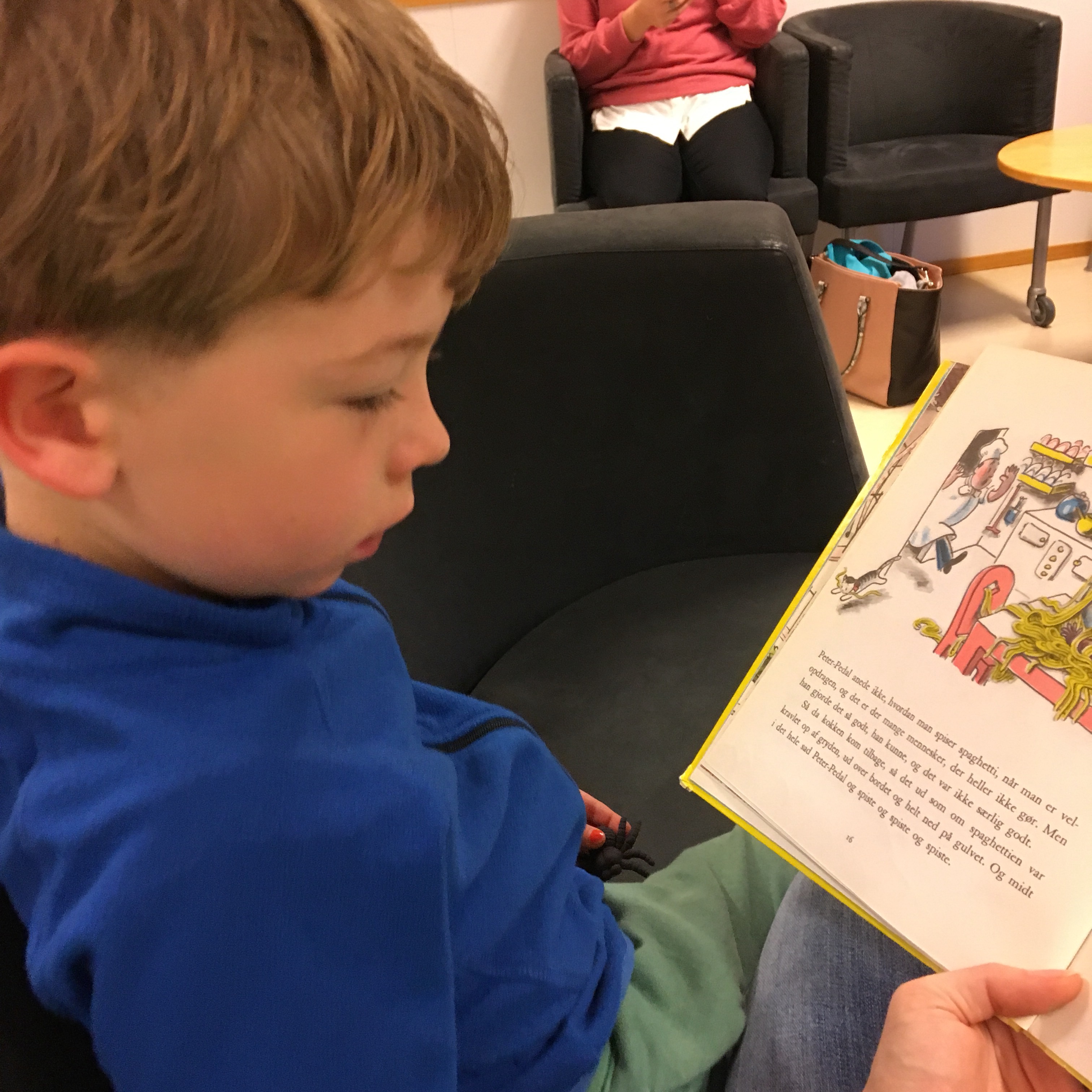 Michel wollte etwas vorgelesen haben. Ein dänisches Buch, das ich dann während des Lesens nach Norwegisch übersetzte. Puh.