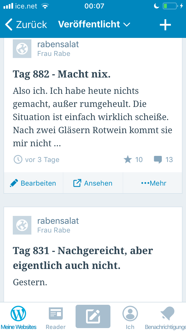 Ich bin PhD-mäßig dem Zeitplan ziemlich hinterher, aber das ist ja nicht meine Schuld und deshalb ist mir das fast sogar ein kleines bisschen egal, ich kann’s ja nicht ändern und muss jetzt irgendwie damit zurechtkommen. Und dass die Kinder beide einfach mal ne gute Woche krank werden würden war halt so auch nicht ganz geplant.