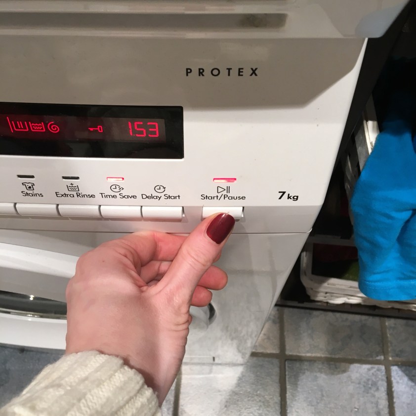 Fake news, das Foto ist gestellt, ich hab nämlich nicht koordiniert bekommen, Auslöser und Knopf an der Waschmaschine gleichzeitig zu drücken.