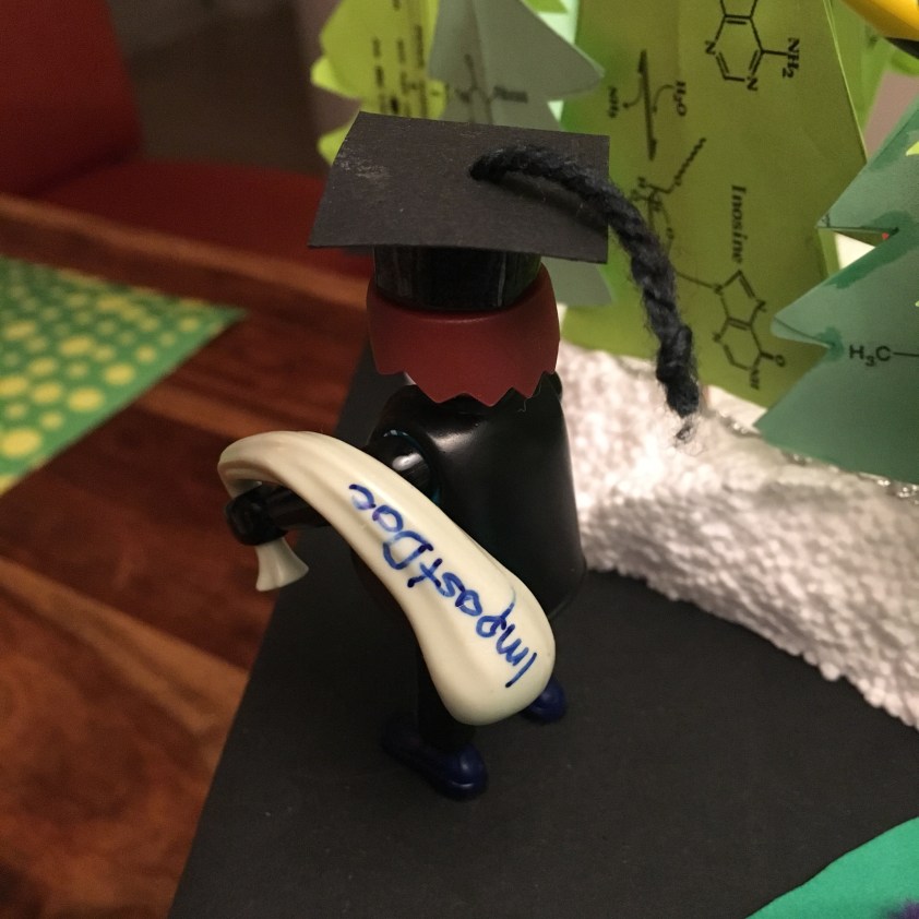 Opponentin 2: fragt auch Fragen. Andere, aber auch gute Fragen. Während der 1. Opponent eher auf Demethylation herumgeritten ist, stellt sie Fragen nach den Effekten. Krankheiten. Funktionen. Auch sie fragt „Was glaubst du, wie das und das geregelt ist.“. Sie fragt aber auch, welches Experiment ich gerne noch in den Manuskripten gehabt hätte. Und was mein Plan ist. („Get a job?“ brachte zumindest Leute zum Lachen.). Irgendwann zwischendurch merke ich, wie mein Kreislauf wegsackt, weil das Triptan wirkt. Ich bleibe aber trotzdem stehen.