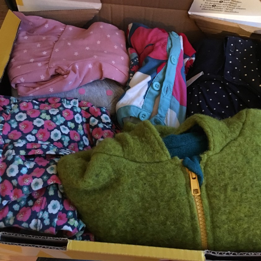 (Die restlichen fünftausend Tonnen zwergikleine Bodys und mikroskopische Söckchen und Schlafanzugstrampler werde ich versuchen, Paketweise loszuwerden. Und wenn’s nicht klappt, tjanun, wird’s halt gespendet. Ich will ja keinen Reibach damit machen, sondern das Zeug hauptsächlich loswerden. Einen Body und einen Strampler werde ich aber behalten, aus rein kitschig-sentimentalen Gründen.)