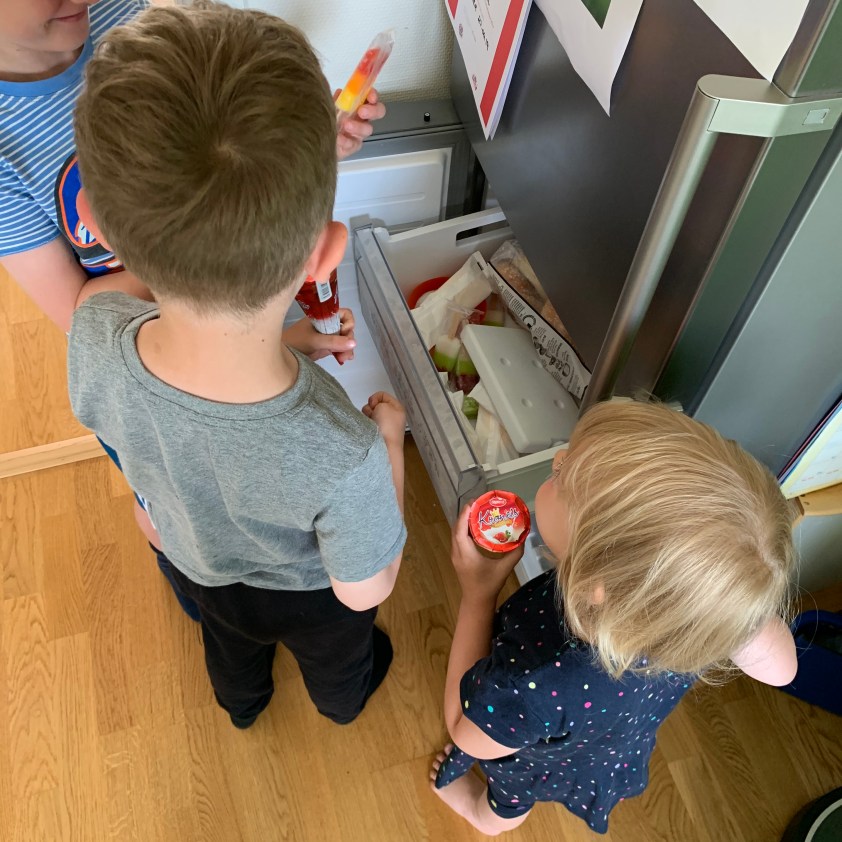 Die Kinder spielen dann aber irgendwann doch alle (!) recht friedlich miteinander und ich halte die Stimmung mit gelegentlichen Eisgaben oben. Michel will, dass wir seinen neuen Kindersitz auspacken, weil er den Karton zum Spielen haben will.