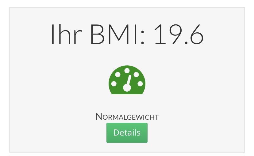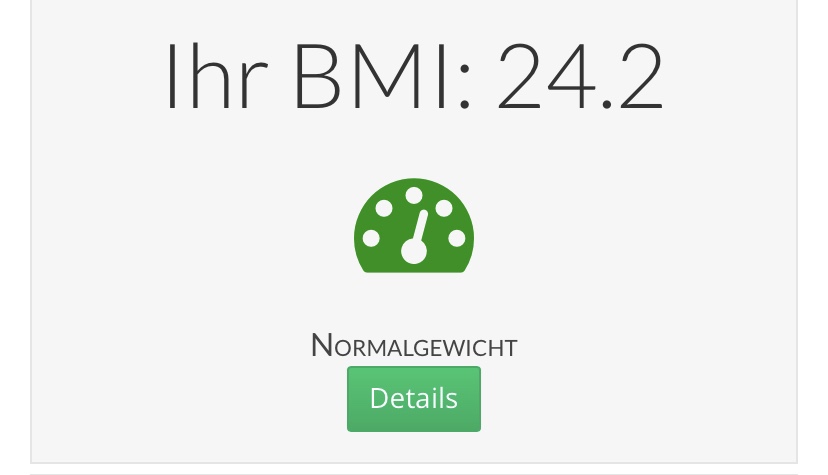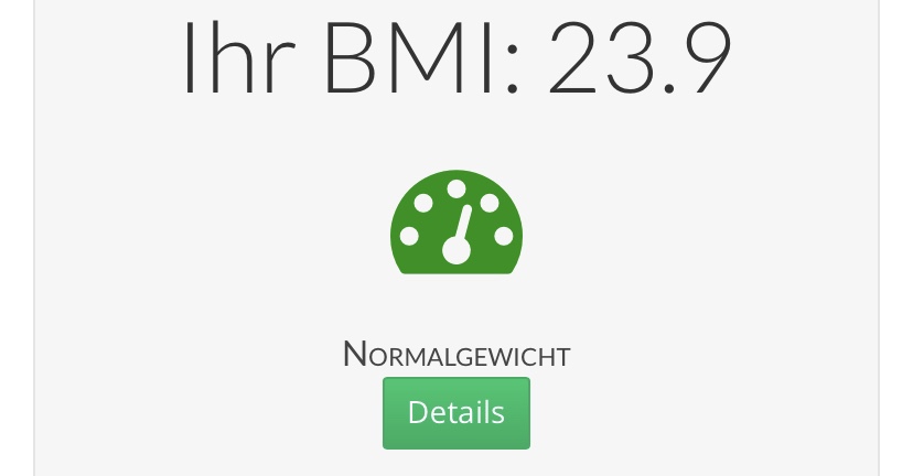 Aber Moment! Bis BMI 25 ist doch Normal und 69,8 kg ist eindeutig unter 70 kg! Tja, man kann sein Gewicht da nur in ganzen Zahlen angeben und offenbar hat das Ding eiskalt den BMI aufgerundet um mich dick zu nennen mir ein schlechtes Gewichts-Gewissen zu machen.