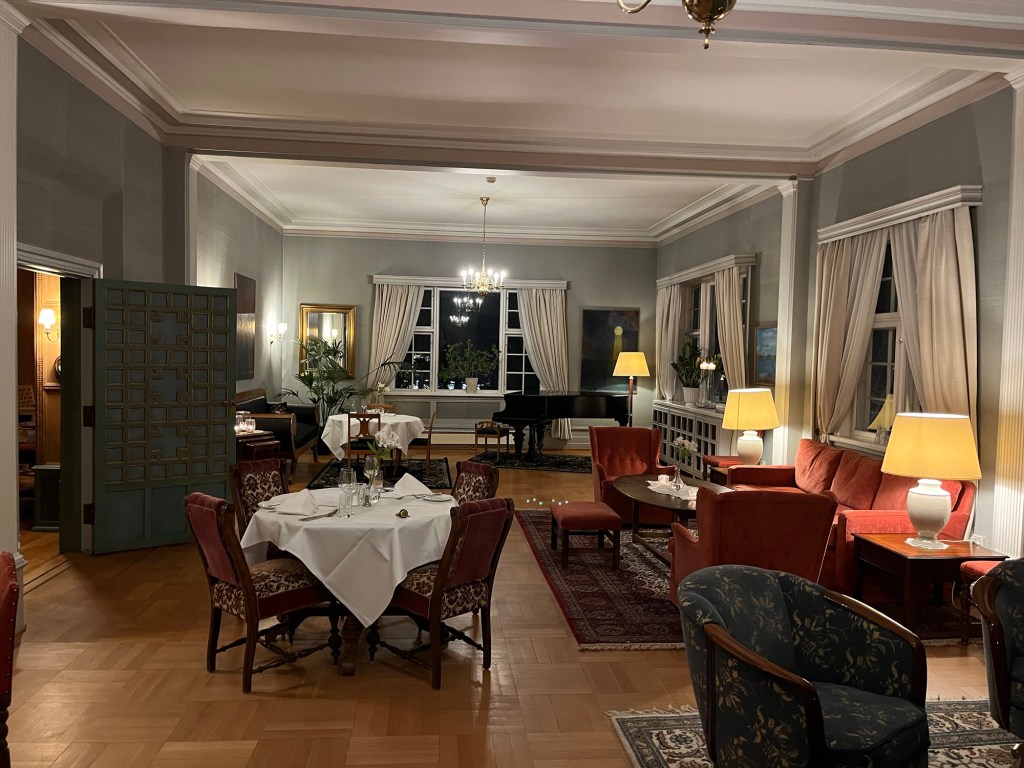 Mein Hotelzimmer diese Woche ist der Knaller. Nicht nur sind die Kollegin und ich die einzigen Gäste im ganzen Hotel (das ist hier aber auch ansonsten ein im Winter sehr sehr toter Ort) und müssen aus Ermangelung an Alternativen zwei mal diese Woche ein 3-Gänge-Menü im Hotel essen, sondern wir haben auch die besten Zimmer bekommen. Das hier ist meins: