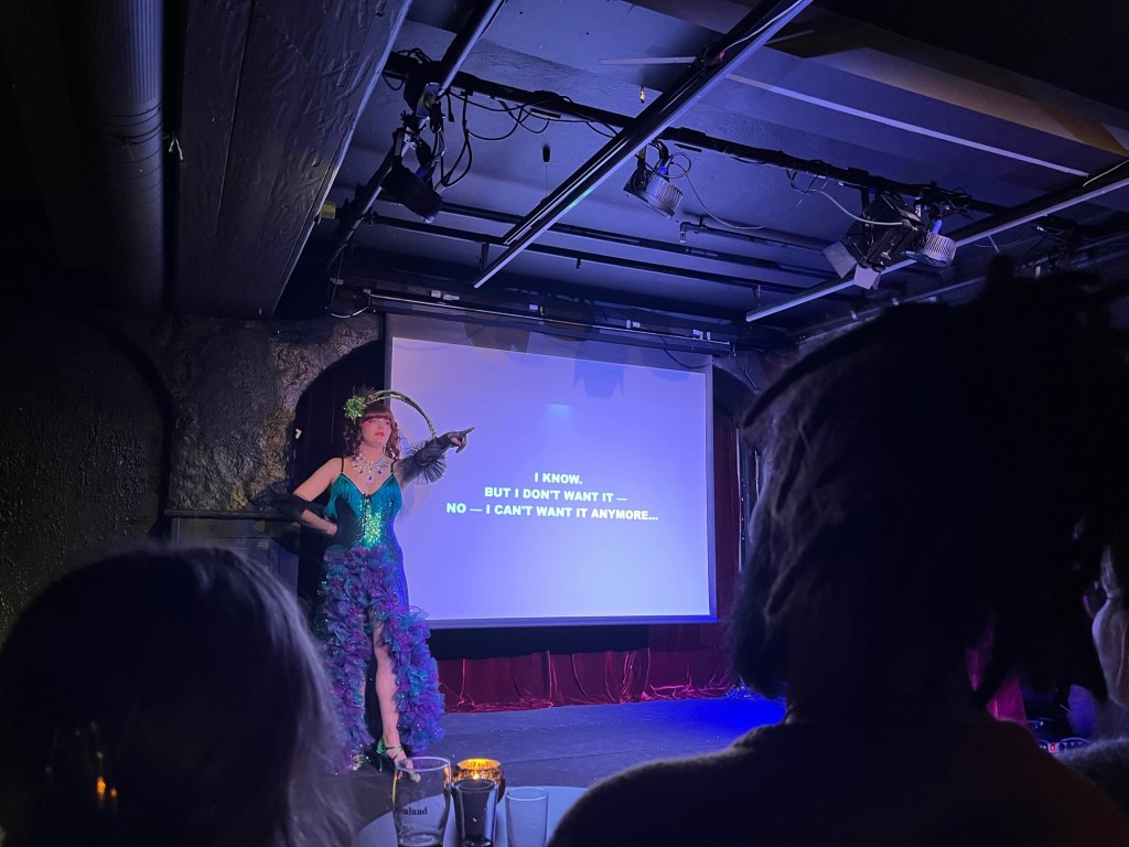 Die Kinder haben es gut, wir haben es auch gut. Deshalb waren wir est eine sehr leckere Pizza essen und dann beim „Burlesque-Karaoke“, was eine herrlich chaotische Mischung aus Burlesque, Karaoke und Impro war. Ich bin schon allein damit zufrieden, dass ich eine Dreiviertel Stunde in ein aufwändigeres Make-Up gesteckt habe, das mache ich auch viel zu selten.
