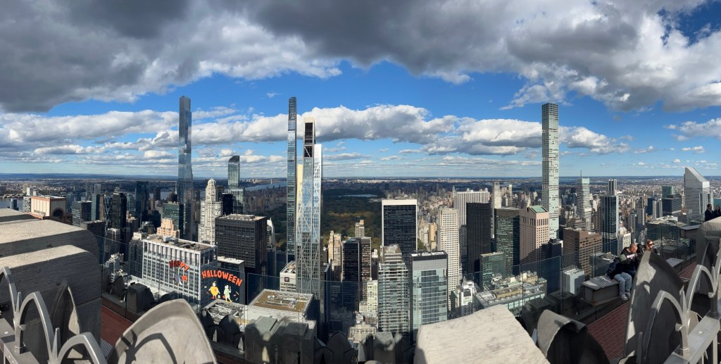 Rockefeller Center ist zum Fotos machen besser als One World Trade Center, weil man draußen ist. Ansonsten war das ein alle Vorurteile gegenüber Amerikanern bestätigendes Erlebnis. Vor der Aufzugfahrt läuft ein Film zur Entstehung des Rockefeller Centers und naja, das ist eine schamlose Verherrlichung der Ausnutzung der Finanzkrise in den 20ern und zahlloser Arbeiter, die überhaupt keine Rechte hatten und wo Arbeitsschutz ein Fremdwort war. Aber ist er nicht ein Held, der Herr Rockefeller???
