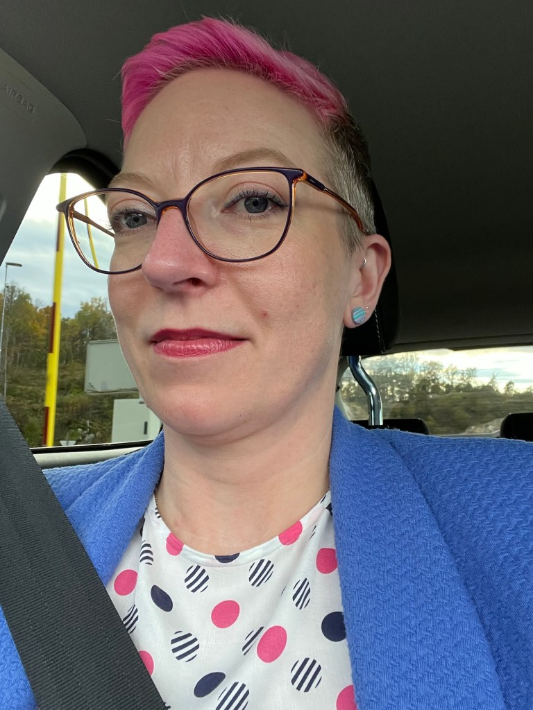 Apropos Ätsch. Was am Freitag wirklich gut war, war, dass ich Komplimente gekriegt habe. Nämlich bei der Inspektion. Erst sagten die zwei Qualitätsdamen, dass die Lieblingskollegin und ich so angenehm seien, so ruhig und entspannt und eine gute Stimmung schafften, dass sie und die anderen Angestellten sich auch schnell entspannten und es insgesamt eine für alle angenehme Inspektion wurde. Das ist exakt unser Ziel, da mache ich zumindest auch keinen Hehl draus. Denn wenn die Leute vor mir in erster Linie Angst haben, fangen sie an, Sachen zu verstecken und dann wird es für alle blöd. Respekt ja, Angst nein. Respekt verdiene ich aber eher durch fachliche Kompetenz und Einladung zur fachlichen Diskussion, als durch Raushängenlassen meiner Machtposition. Das sind jedenfalls meine Gedanken dazu. Es ist aber wirklich, wirklich schön, das auch zurückgemeldet zu bekommen. So auch apropos meine Chefin und ihre „Bewertung“, die sie vornehmen will. Was dann aber noch sowohl Sahnehäubchen als auch Kirsche war, war, dass eine Dame beim Hersteller mich noch auf dem Weg zur Tür raus ansprach, wie toll sie meinen Stil fände, und dass alle Details so toll zueinander passten. Haare zum Lippenstift, beides zur Bluse, Ohrringe zum Blazer und beides zu Bluse und Hose, so toll sei das. (Anmerkung: das ist auch alles nicht Zufall.) Ich wurde ganz rot, das ist ja doch SEHR selten, dass einer in Norwegen jemand solche Komplimente macht. Und auch: Ällabätsch, Chefin.
