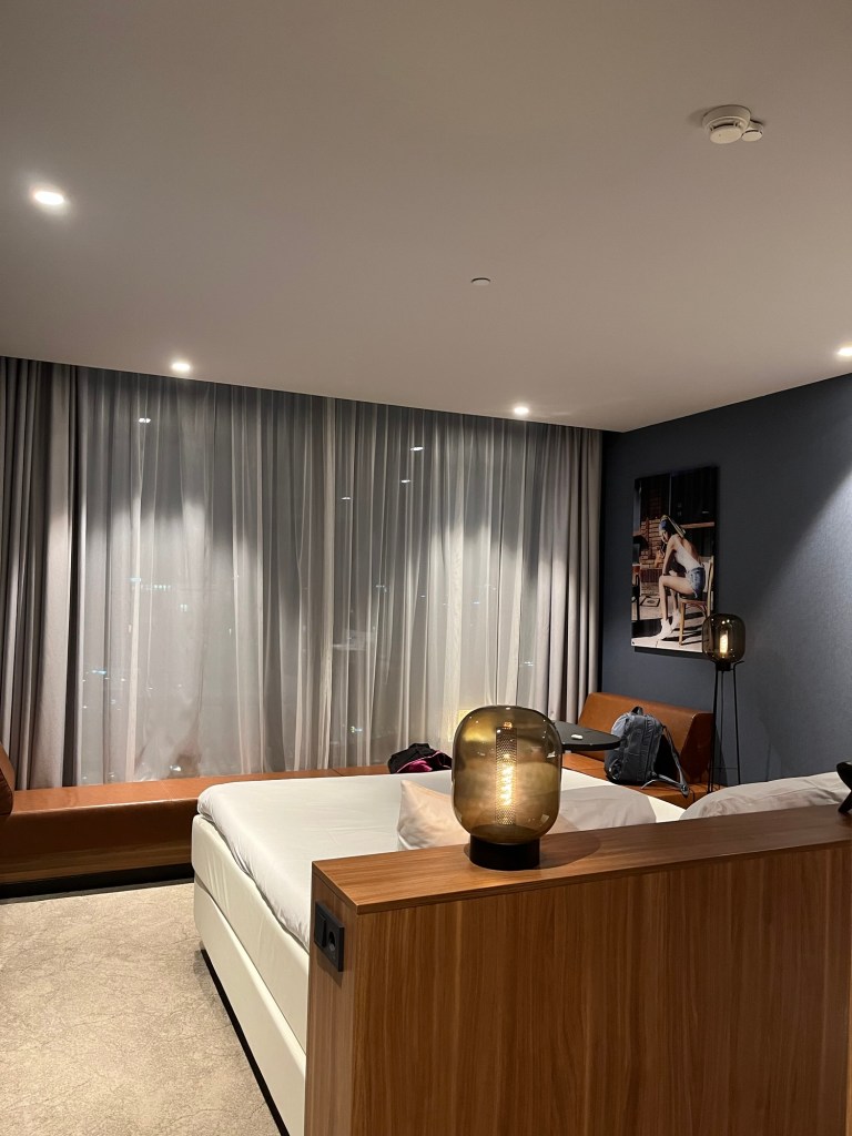 Jetzt liege ich hier in meinem absurd riesigen Hotelbett und müsste mal langsam schlafen, aber ich bin doch ein bisschen aufgeregt, fürchte ich. Mein Zimmer ist riesengroß und die EMA wirklich nebenan, ich weiß jetzt, warum der Lieblingskollege unbedingt auf DIESES Hotel umbuchen wollte.