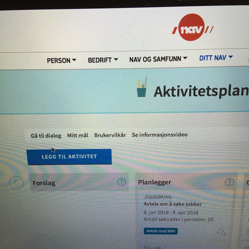 Dann mache ich mich an die „Arbeit“, die heute hauptsächlich darin besteht, meine ganzen Profile auf diversen Jobbsuche-Websites zu aktualisieren. Außerdem muss ich eine etwas unangenehme Mail schreiben und dann alles brav beim NAV eintragen. (Seit ich weiß, dass die Sachbearbeiter da monatlich an irgendwelchen „Erfolgen“ gemessen werden, gebe ich mir wirklich Mühe damit, alles da reinzuschreiben.)