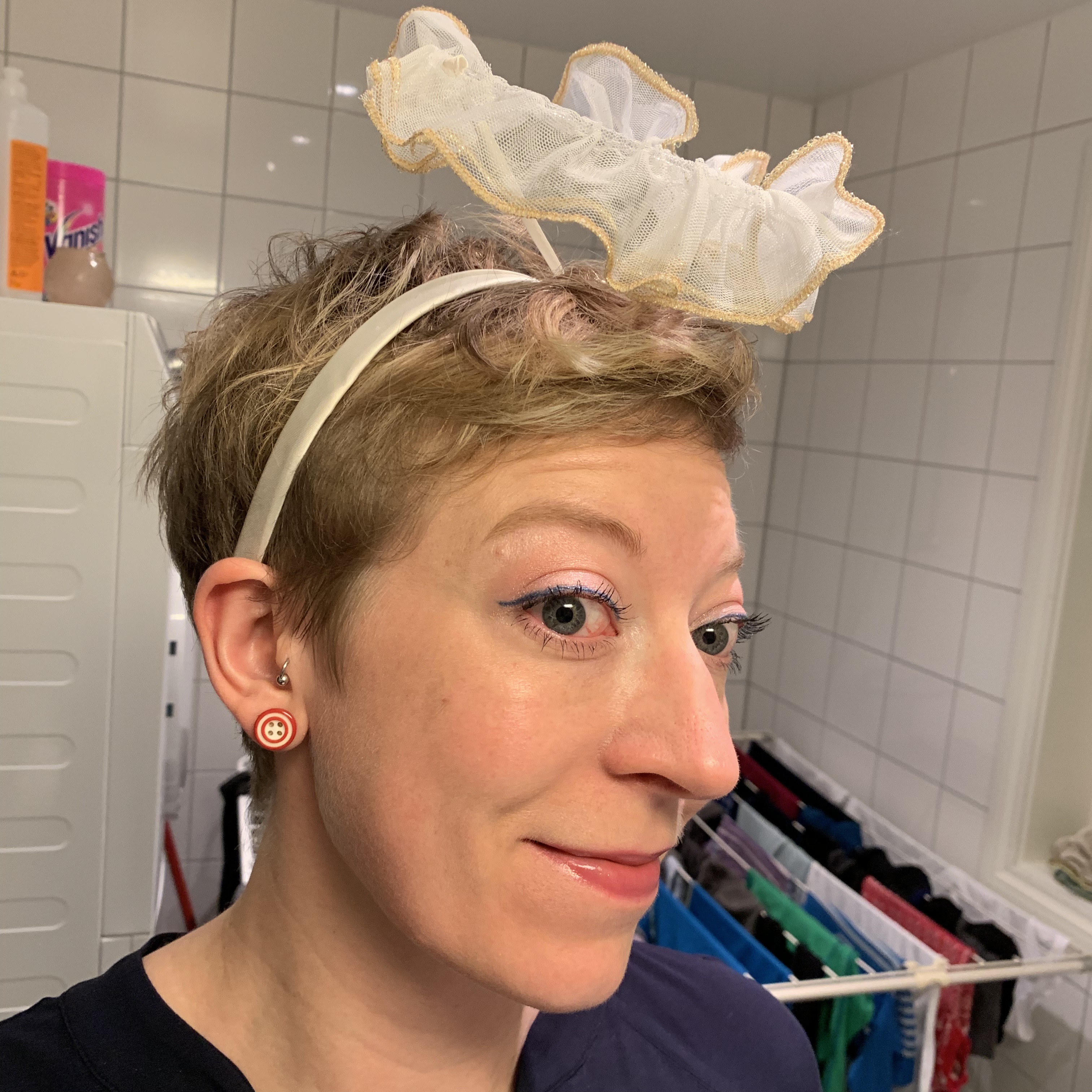 Und danach musste ich ja in der Praxis eigentlich 20 Minuten warten. Das passte null (also wirklich GAR NICHT) in meinen straffen Zeitplan, weshalb ich die Zeit eigenmächtig auf 13 Minuten verkürzte und dann sehr fix zur Auto ging, sehr fix halb voll (für 15,48/L) tankte und Scheibenwischzeug kaufte, ein Bild machte aber keine Zeit zum Posten hatte, nach Hause düste, in Windeseile Make-up in mein Gesicht schmierte (schon gut, wenn man so nen festen, dezenten und schnellen Look quasi auch im Halbschlaf in 5 Minuten hinbekommt), Fotos machte und keine Zeit zum Posten hatte, auf die Uhr sah, feststellte, dass ich *jetzt* losmusste, die Kaffeemaschine wieder ausstellte, Kekse einpackte, ein Foto machte, keine Zeit zum Posten hatte und dann fast nach Schweden fuhr. Gemütlich, ich war ja pünktlich.
