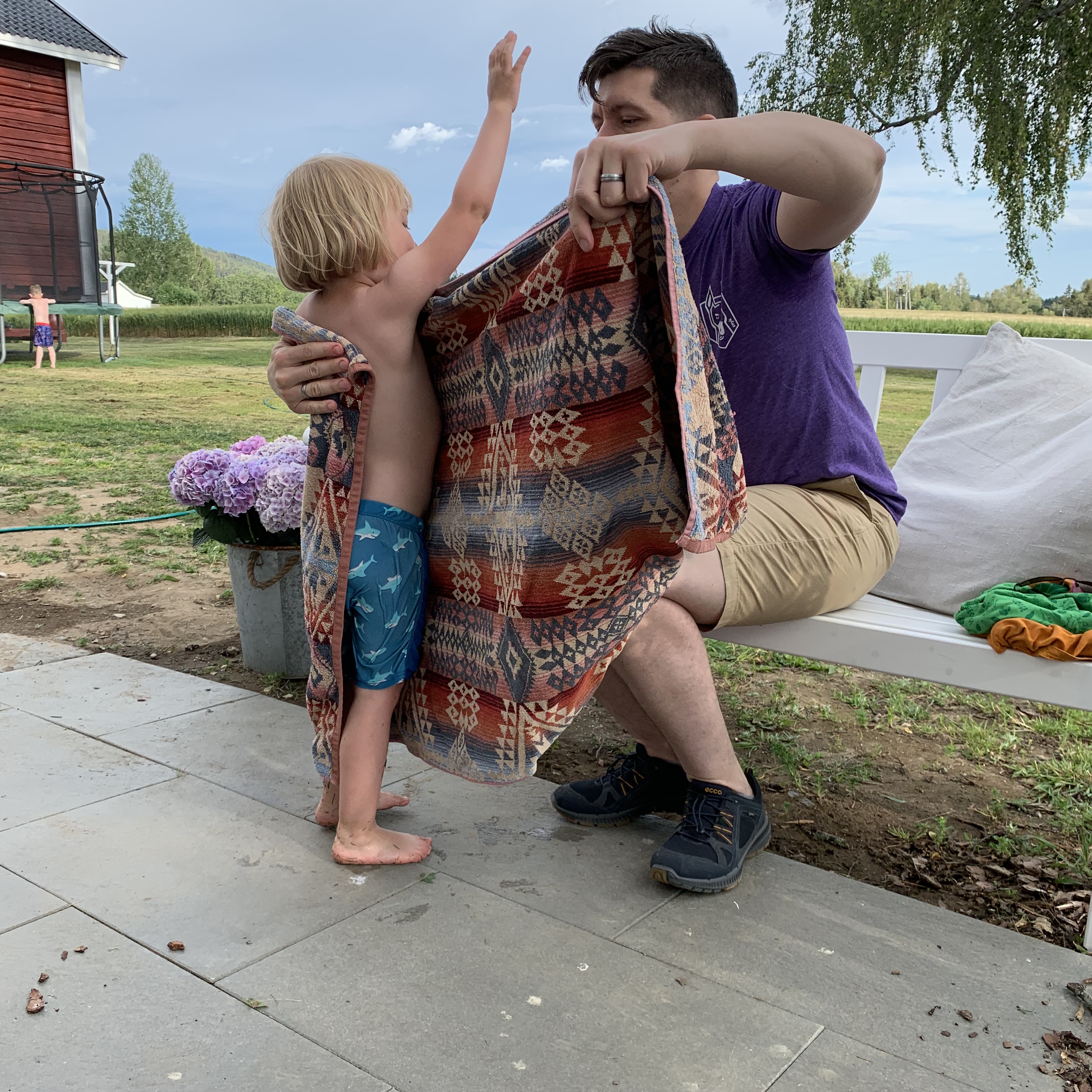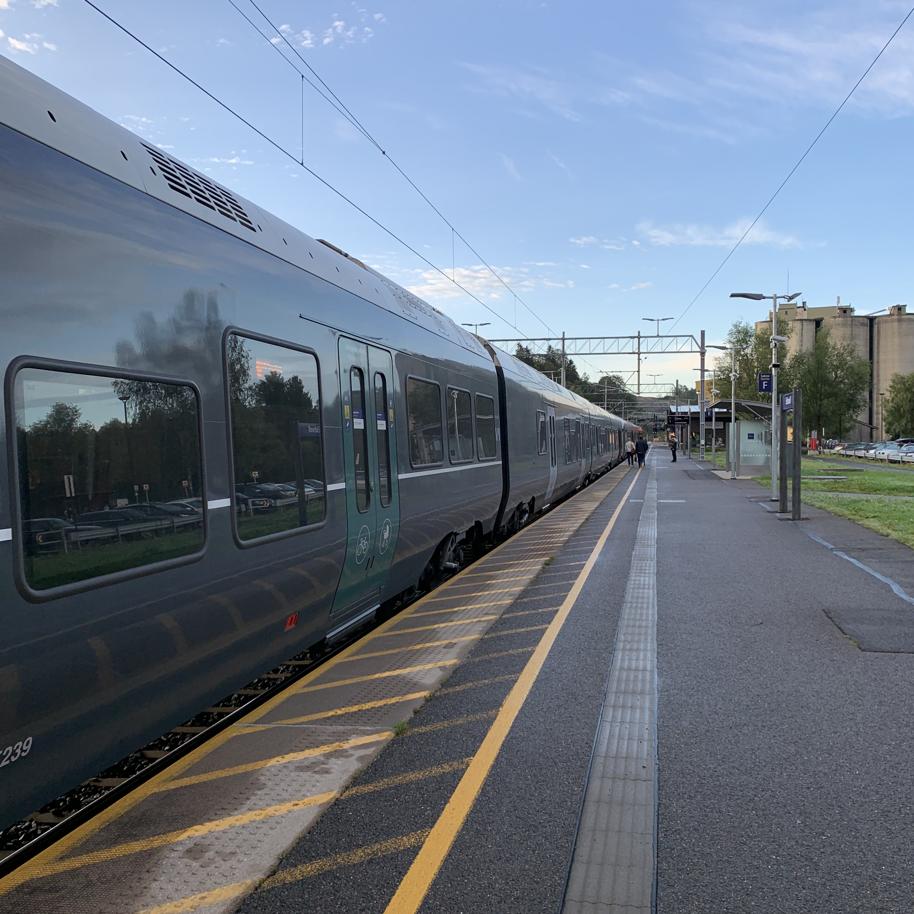 Der Techniker verpasst dann knapp seinen „buss for tog“, aber ich nehme ihn mit nach Skarnes, da geht mein Weg eh lang. Dort verpasst der Techniker den ganz normalen tog (ohne buss) um etwa 30 Sekunden, aber ich kann ihn wirklich nicht bis nach Asker fahren, ich muss langsam nach Hause und die Kinder abholen. Er sagt, das sei kein Problem, er würde einfach warten. Tjanun.