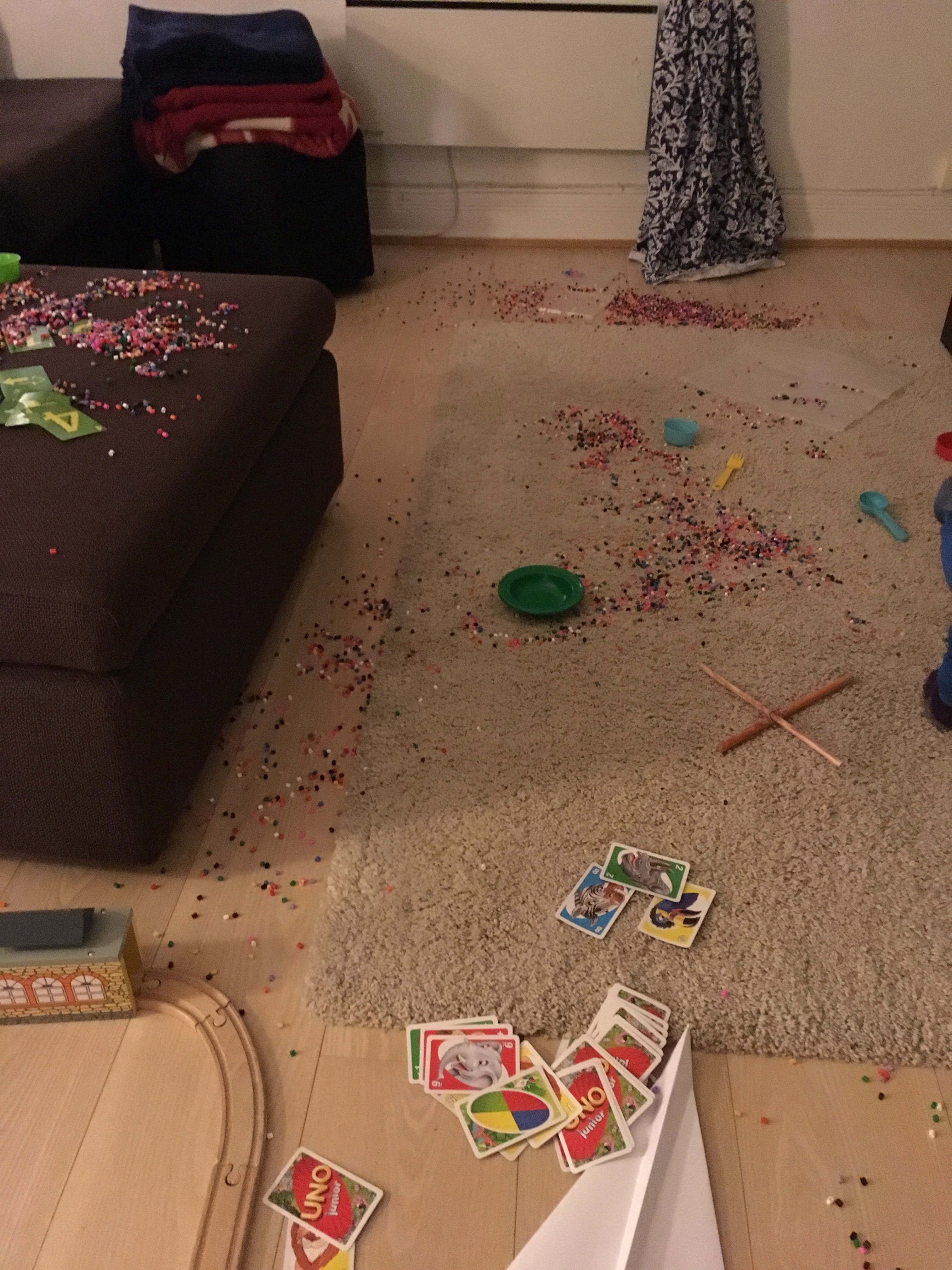 (Es ist hier allerdings, dafür dass hier 8 Menschen auf 120 qm „wohnen“, von denen 4 ungefähr gar nicht freiwillig aufräumen, durchgängig sowohl überraschend aufgeräumt als auch überraschend sauber.)