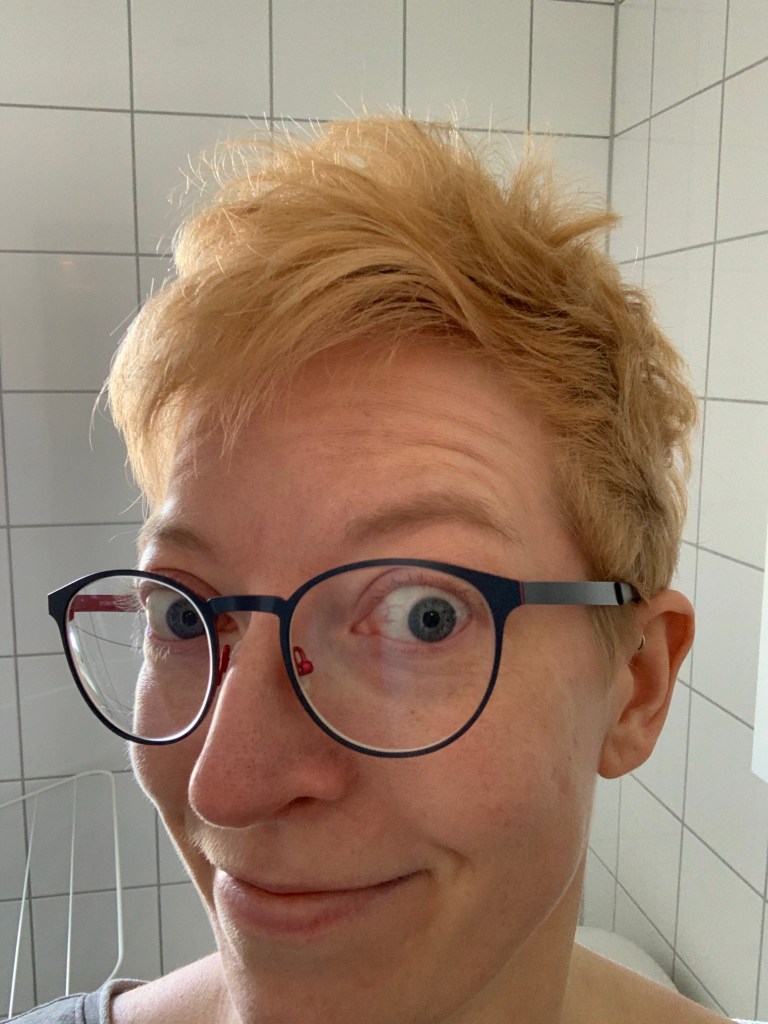 Ebenfalls heute: zum ersten Mal von Herrn Rabe die Haare schneiden lassen. Nur im Nacken/um die Ohren/am Hinterkopf, aber das macht er schon sehr gut, bestimmt könnte er obendrauf auch, aber das hat jetzt eine gute Länge für eine Megan Rapinoe inspirierte Frisur hinzubekommen. Ich feiere diese Frau sehr und wenn sie die noch nicht kennen, Googlen sie die ruhig mal. Morgen mache ich mal im Tageslicht Fotos von Farbe und Schnitt.