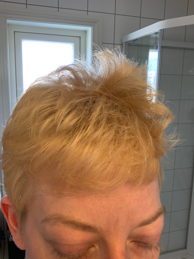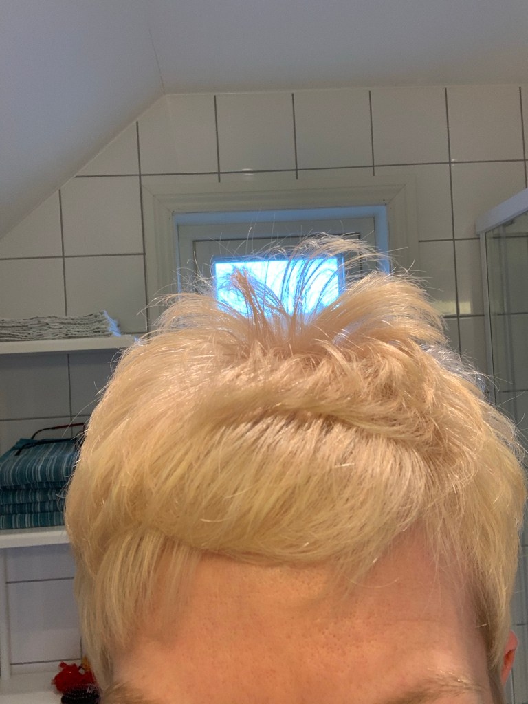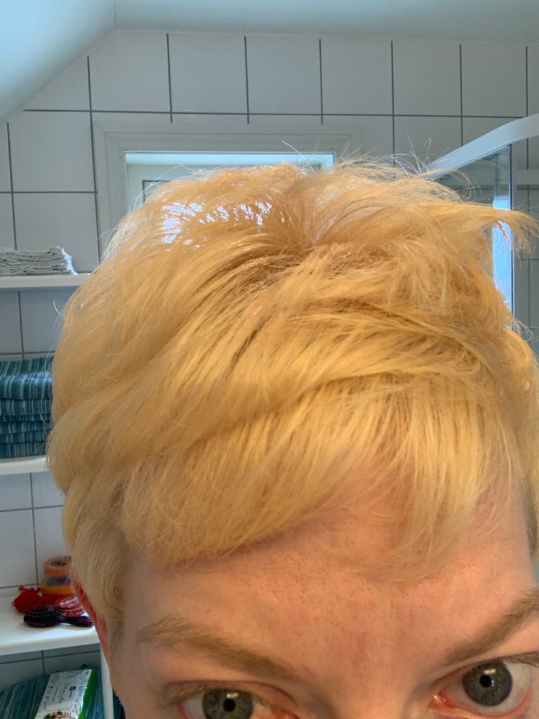 Vorher waren die Haare kurz weiß, und zwar richtig weiß, wie früher (hatte das lange in genau dieser Farbe):