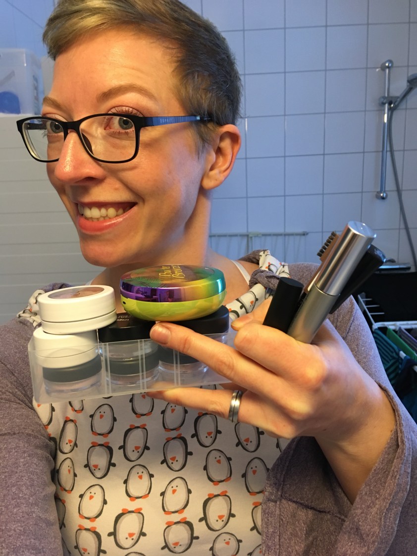 Dazwischen habe ich Michel und Herrn Rabe weggebracht. Pippi musste zum Arzt, wie ich dachte, um die Mandeln noch mal zu kontrollieren, aber der Arzt wusste dann von nix, es war alles etwas merkwürdig, aber lustig. Also mit dem Arzt. Vor dem Arzttermin hatte ich aber noch Zeit mich zu schminken. Pippi glitzerte danach auch ziemlich.