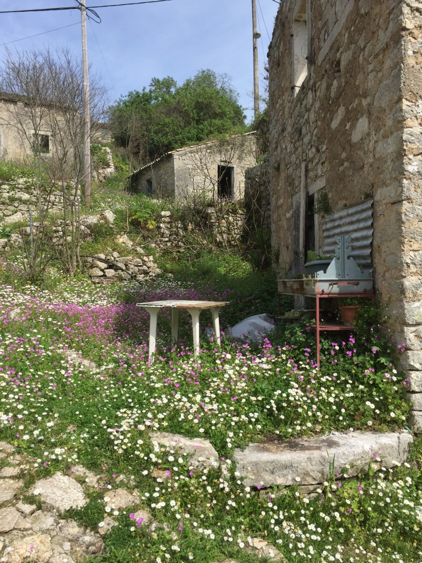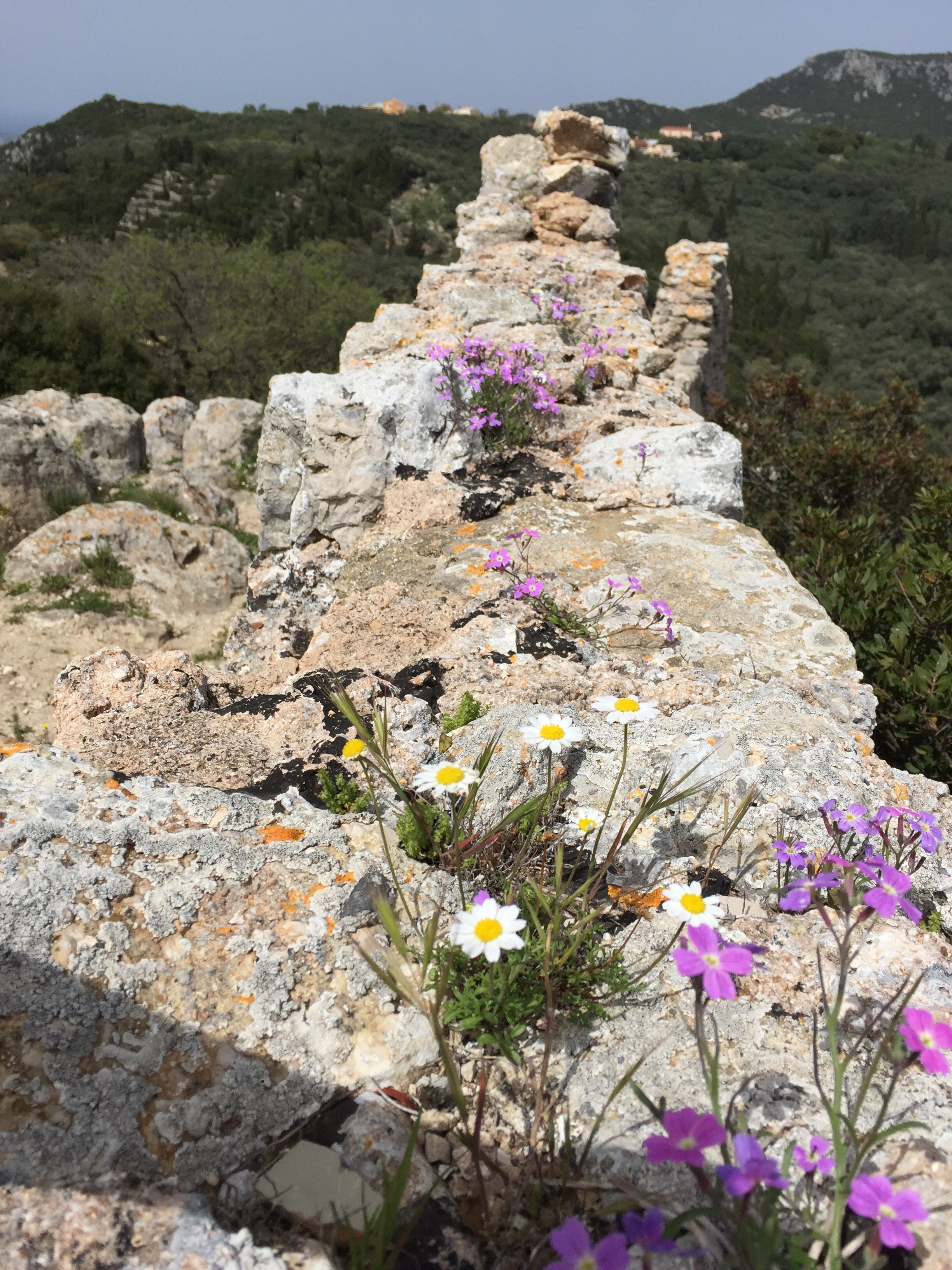 Paleo Perithia. Ein altes Dorf am Pantokrator, das jetzt nach und nach wieder restauriert und belebt wird. Gerade im Frühling komplett überwuchert von wilden Blumen, sind die alten Ruinen einfach traumhaft schön.