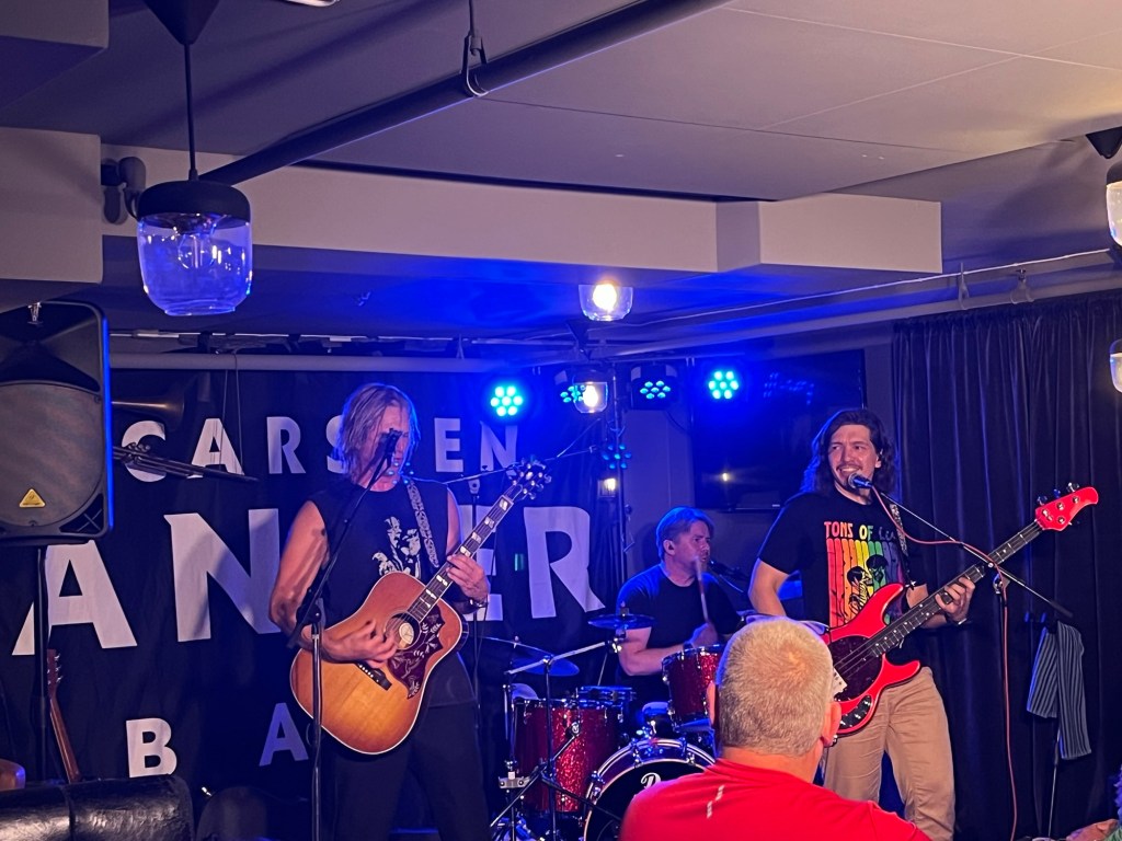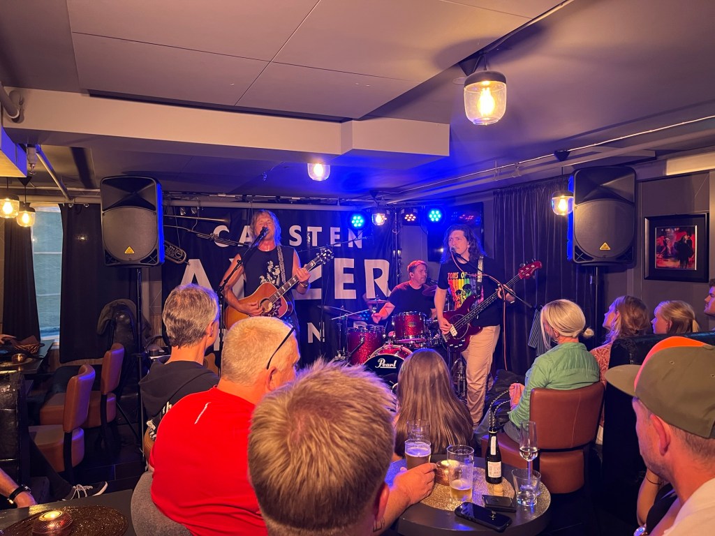 Der Grund, warum ich spät abends noch Cola trank, war, dass Herr Rabe mit seiner Band im lokalen Pub (der, der bei Hans voller Wasser gelaufen ist) ein Konzert gespielt hat. Ich musste danach noch fahren, nämlich Michel von seinem besten Freund abholen und die Schwägerin nach Hause bringen (ich wäre gelaufen, aber dann wäre nichts von den beiden Dingen möglich gewesen). Das Konzert war bombe, wirklich guter Sound und gut besucht (für ein wenig beworbenes Pub-Konzert). Wesentlich mehr Leute hätten in den Pub nicht rein gepasst. Ich glaube, auch der Getränkeumsatz war durchaus anständig, win-win also für die Band und die Pubbetreiberinnen.