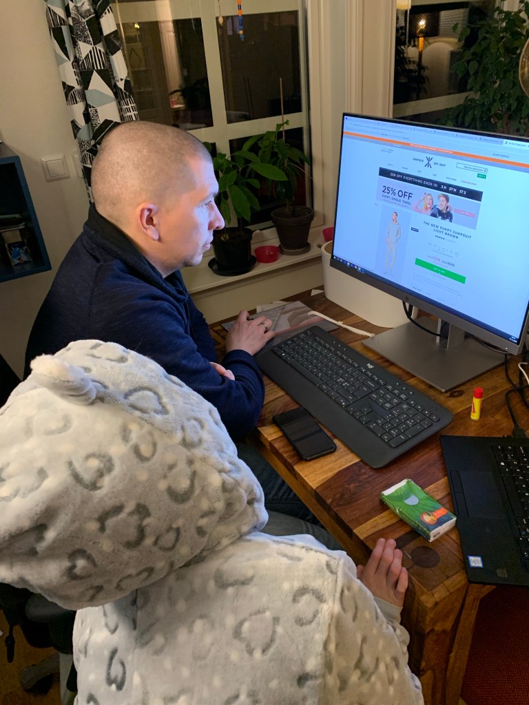 Apropos Homeoffice: Herr Rabe und ich haben uns gestern Onesies bestellt. In einer eeeeetwas anderen Qualität als die in großen Kindergrößen von Lindex, die wir haben. Diese Homeofficescheiße geht ja vermutlich noch den ganzen Winter so weiter, dann bald stilecht und leicht peinlich obendrein im Partnerlook.